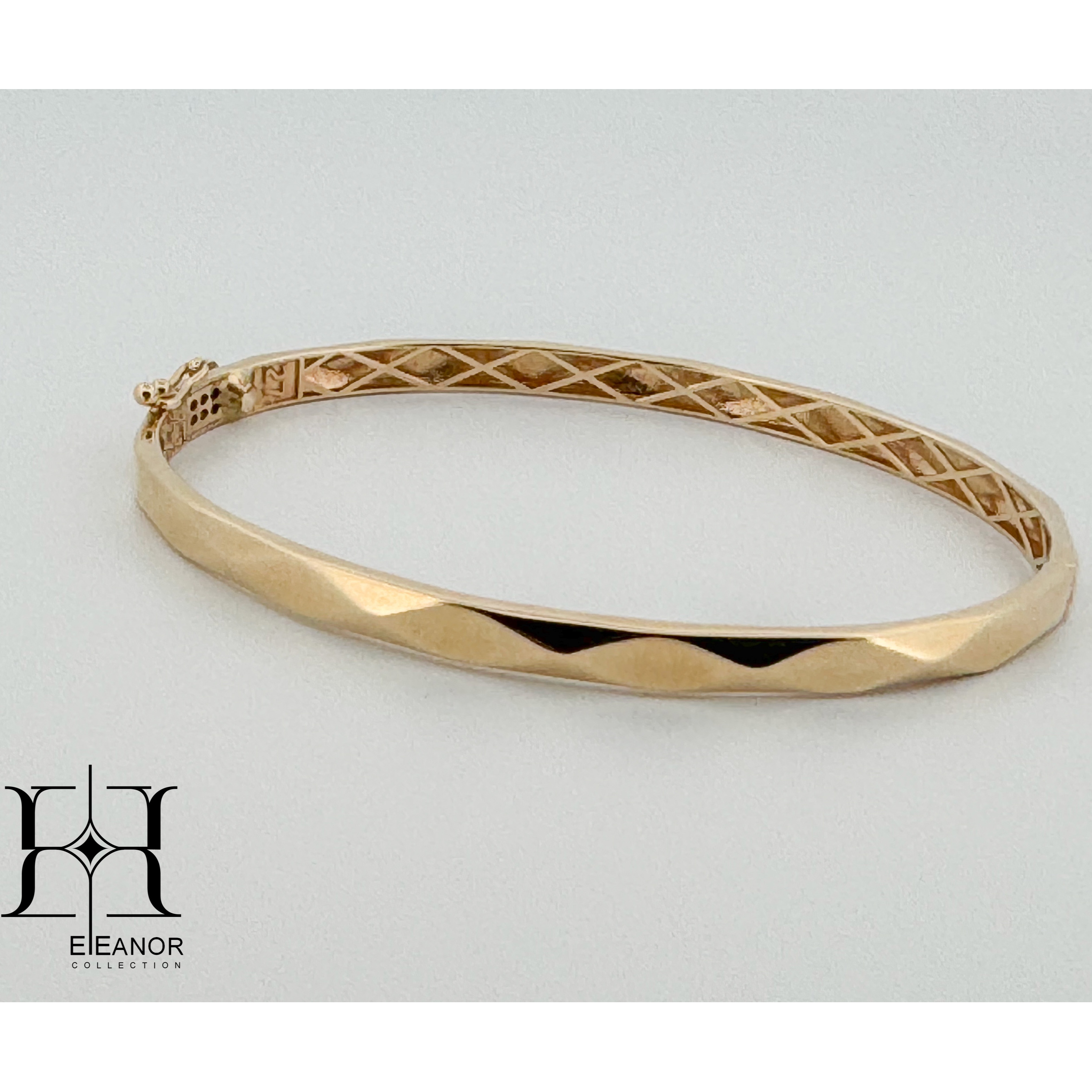 The 18-karat yellow gold bangle is a perfect choice for those seeking a stylish and classic look. This bangle, crafted from high-quality 18-karat gold, offers exceptional durability and brilliance. Suitable for special occasions or as an everyday accessory, it brings elegance and refinement, along with superior quality. It is an excellent choice for those who value both beauty and strength in their jewelry.