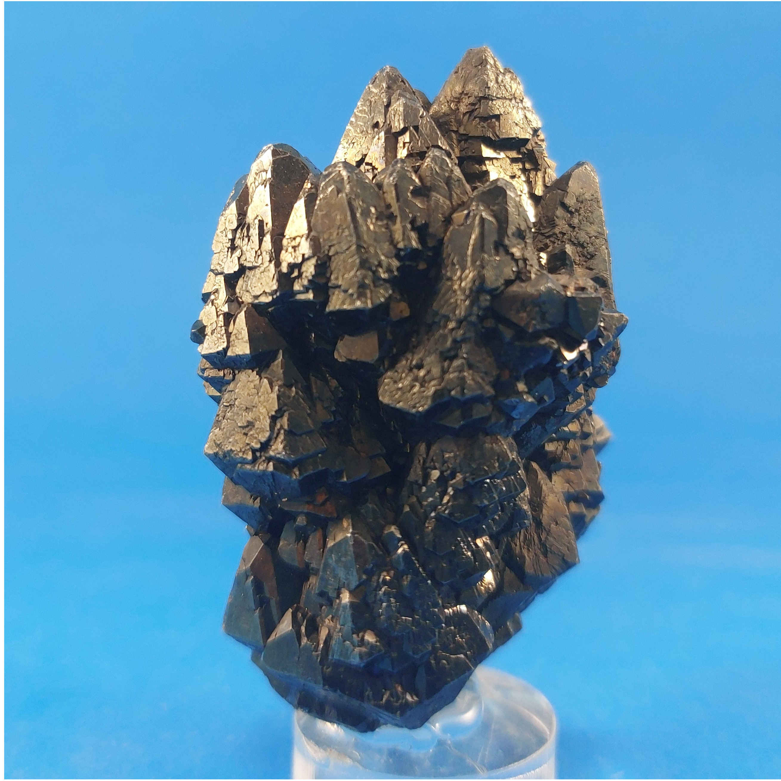 This striking piece of *natural hematite crystal* showcases a sleek metallic luster and intricate crystal formation. Often referred to as the "mirror of the Earth," hematite is revered for its grounding energy and reflective power.